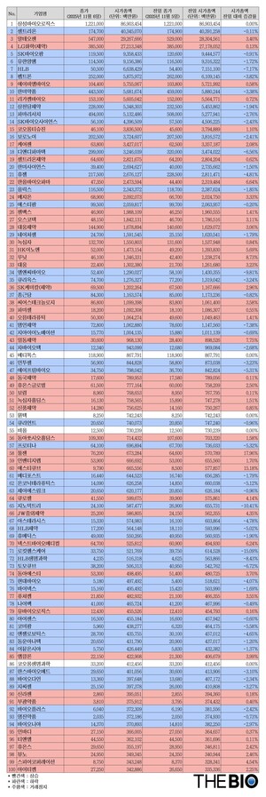 [시가총액 모니터] 제약바이오 상장기업 ‘톱 100’(11월 6일)