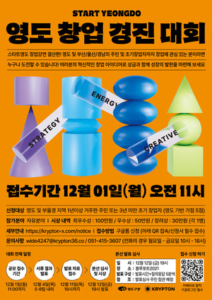 [부산 위클리오늘=허선희 기자]부산시 영도구(구청장 김기재)는 오는 12월 1일까지 ‘영도 창업경진대회’ 참가자를 모집한다.영도구를 비롯한 부산․울산․경남 지역에 1년 이상 거주한