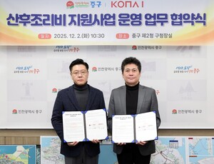 코나아이(대표이사 조정일)는 지난 2일 인천광역시 중구와 '중구 산후조리비용 지원사업' 업무협약을 체결하고, 내년 1월부터 중구 출산 가정을 대상으로 산후조리비 지급 시스템을 운영