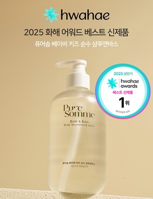 민감한 우리 아이 피부를 위한 진짜 ‘순수함’을 담은 퓨어솜(PURE SOMME) 베이비 키즈 순수 샴푸앤바스가 2025 화해 어워드 베이비워시 부문 1위를 수상했다.이번 수상은