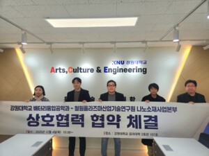 [중앙이코노미뉴스 김선정] 강원대학교(총장 정재연) 문화예술·공과대학 배터리융합공학과(학과장 김영진)는 지난 4일 철원플라즈마산업기술연구원(원장 황명근) 나노소재사업본부(본부장 최