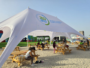 (두바이=국제뉴스) 유지현 기자 = 지난달 7일 두바이 카이트 비치에 조성된 DP월드 30x30 피트니스 빌리지 카이트 비치.두바이 경제관광부와 스포츠위원회가 주최한 열리는 202