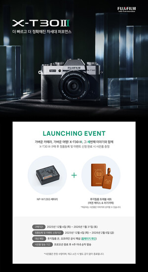 후지필름일렉트로닉이미징코리아(사장 임훈, 이하 후지필름 코리아)가 고성능 콤팩트 미러리스 카메라 ‘X-T30 III’의 정식 출시를 기념하는 론칭 프로모션을 실시한다고 5일 밝혔다