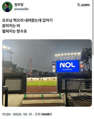 플레이오프 1차전을 앞두고 거센 비가 쏟아지며 관중들의 걱정이 커지고 있다.한화 이글스는 17일 오후 6시 30분 대전 한화생명 이글스 파크에서 삼성 라이온즈와 2025 신한 SO