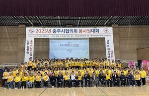 (충주=국제뉴스) 김상민 기자 = 대한적십자사봉사회 충주지구협의회(협의회장 김상호)는 25일 수안보다목적체육관에서 봉사원 200여 명이 참석한 가운데 '2025년 충주지구 봉사원대