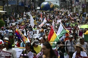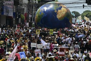 (브라질=국제뉴스) 이기철 기자 = 15일(현지시간) 브라질 파라주 벨렝에서 열린 제30차 유엔 기후변화협약 당사국총회(COP30)에서 수천 명의 사람들이 소위 '위대한 민중 행진
