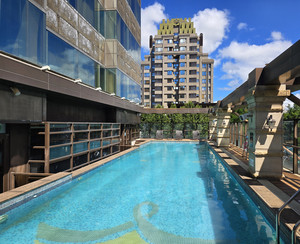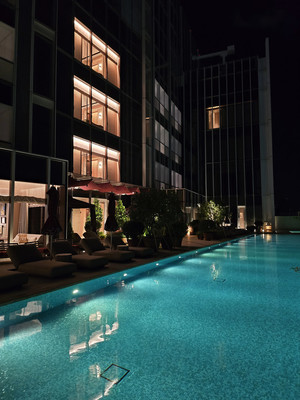 (대만=국제뉴스) 유지현 기자 = 27일 대만 타이베이시 풀론호텔 타이베이 센트럴(Fullon Hotel Taipei Central) 호텔 수영장.타이베이 중심부에 위치한 5성급