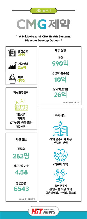 [채용 원픽] CMG제약, 완제의약품분석·연구기획·품질관리(~10/17)