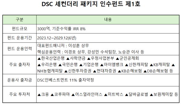 DSC인베스트, 세컨더리패키지 1호펀드 '투자소진·회수' 투트랙 (DSC인베스트먼트 DSC세컨더리패키지인수펀드 세컨더리)