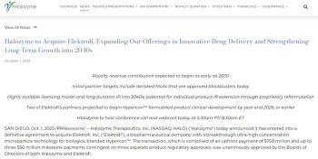 할로자임이 피하주사(SC제형) 약물 전달 기술 기업 일렉트로파이(Elektrofi)를 전격 인수했다. 알테오젠의 경쟁사이면서 MSD와 SC제형 플랫폼 특허 분쟁을 벌이고 있다는 .
