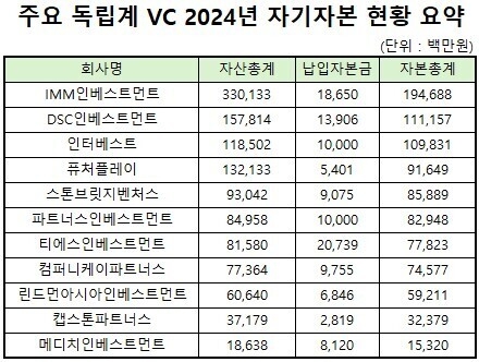 자기자본(자본총계) 확장 추세는 독립계 벤처캐피털(VC)도 예외는 아니다. 꾸준히 벤처투자 전선을 누벼온 독립계 벤처캐피털은 우수한 펀드 운용 성과를 바탕으로 차곡차곡 자기자본을