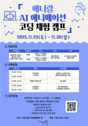 AI·VR로 배우는 애니메이션 코딩 체험...'애니랑 AI 애니메이션 코딩 체험 캠프'