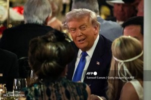 US President Donald Trump talks with guests during a Halloween party at his Mar-a-Lago estate on Oct