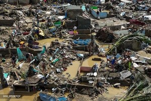 This aerial photo shows damaged houses in the aftermath of Typhoon Kalmaegi in Talisay, in Cebu prov