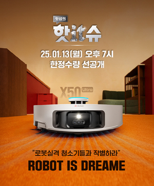 로봇청소기 브랜드 드리미는 신제품 X50 Ultra 출시 소식과 함께 한정수량 최초공개 라이브를 진행한다고 10일 밝혔다. 해당 신제품은 오는 13일 오후 7시 코오롱글로벌 사옥에
