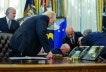 도널드 트럼프 미국 대통령이 6일 워싱턴DC 백악관 집무실에서 연설 도중 자신의 뒤에 시립