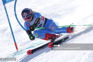 (미국=국제뉴스) 김준서 기자 = 이탈리아 대표팀의 소피아 고기아가 29일(현지시간) 콜로라도주 코퍼 마운틴에서 열린 스티펠 코퍼 컵 2025 여자 대회전 1차전에서 경쟁하고 있다