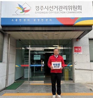 (서울=국제뉴스) 박종진 기자 = 박병훈 국민의힘 중앙위원회 상임고문(경주시장 예비후보)이 20일 경주시선거관리위원회를 찾아 예비후보 등록을 마치고, 본격적인 선거 운동의 닻을 올