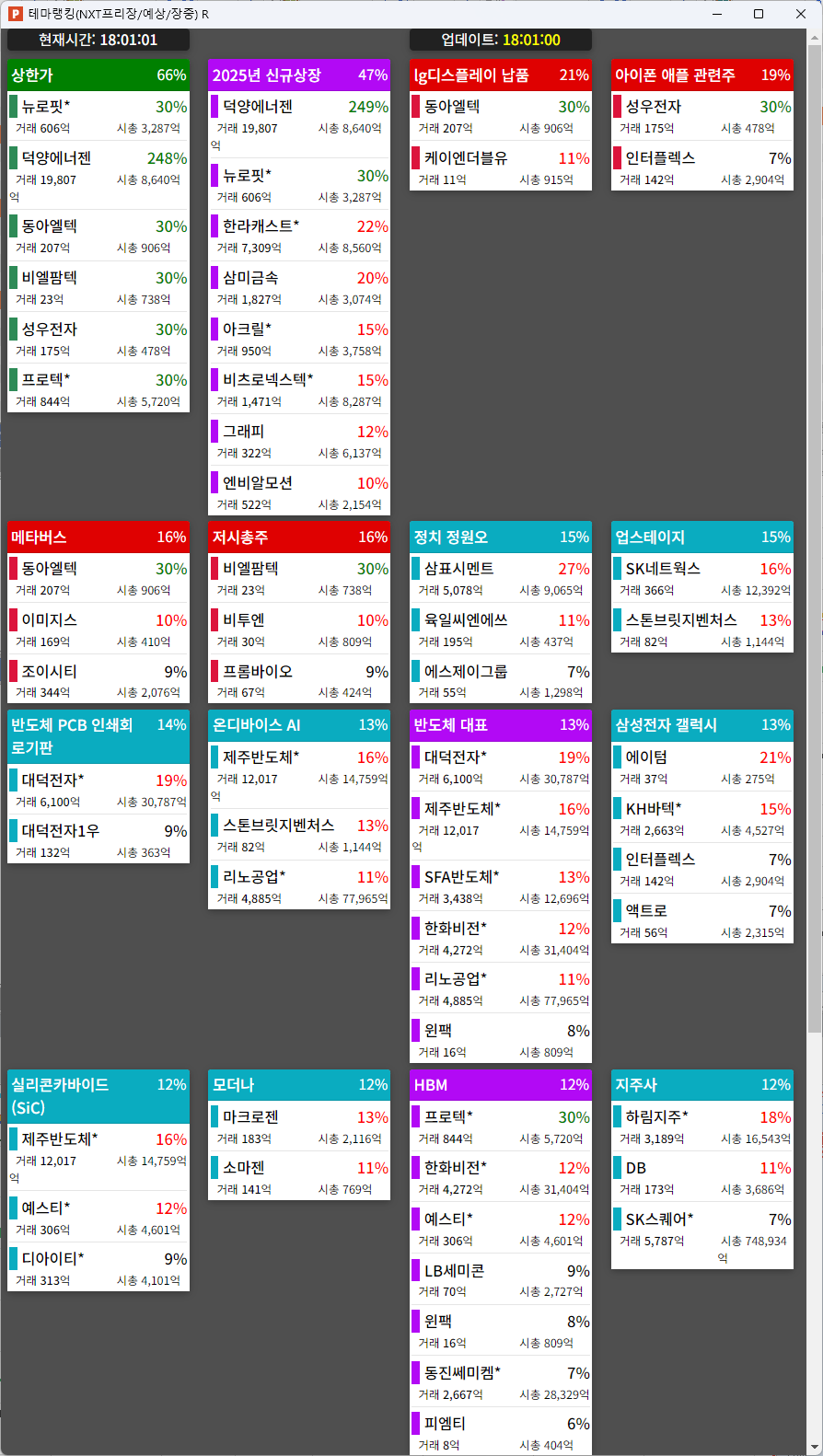 22. 나노팀(18.08%) : 스페이스X 및 2차전지 테마 상승 속 급등