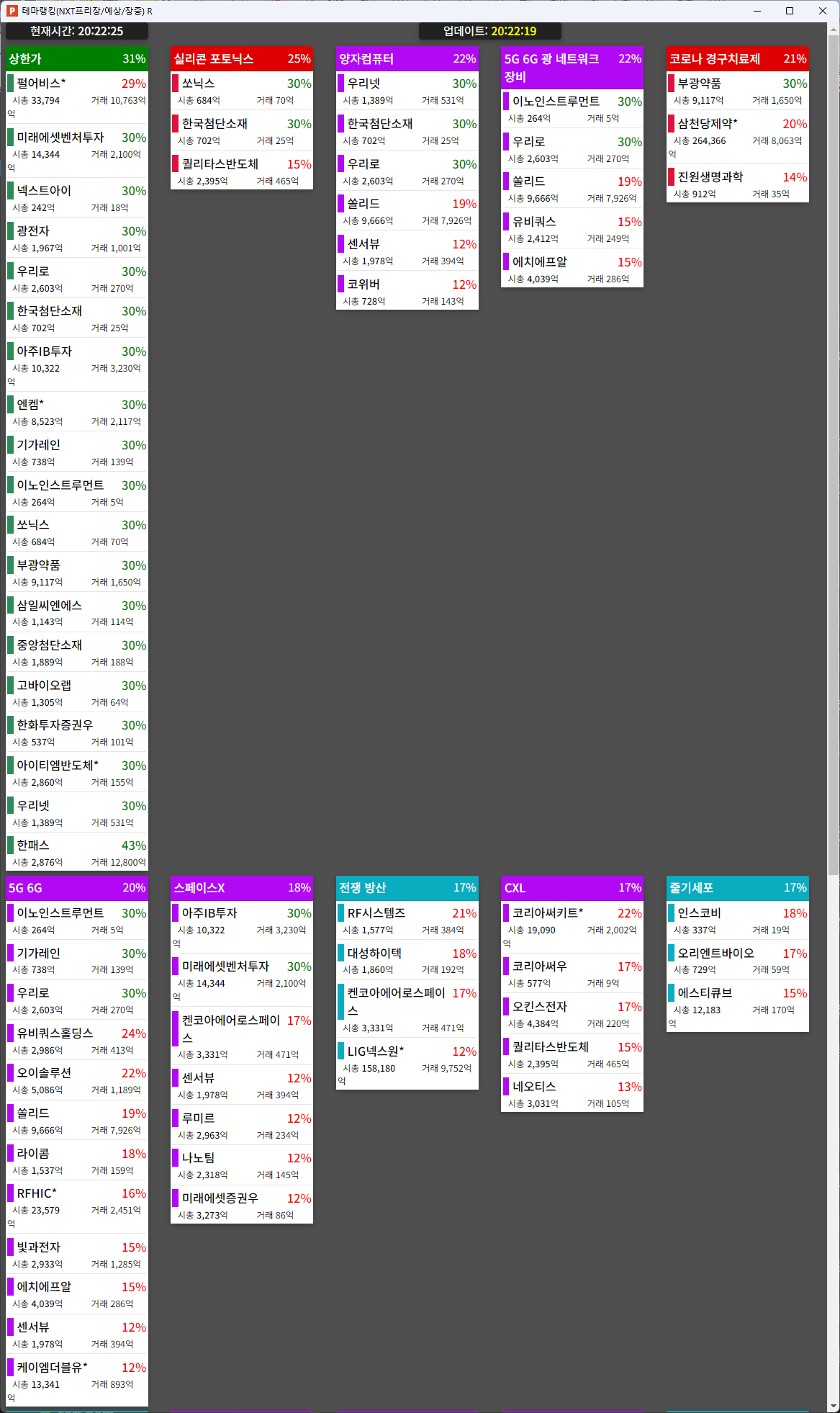 29. 쏠리드(19.44%) : 통신장비/5G(5세대 이동통신) 테마 상승 속 안정적 이익 창출 지속 및 저평가 분석 모멘텀 지속 등에 급등